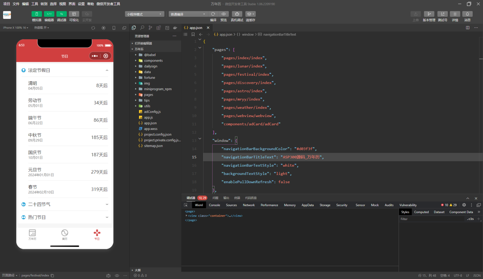强大的万年历微信小程序源码支持多做流量主模式,拥有天气查询,黄历查看,节假日查询(节假日历史等);