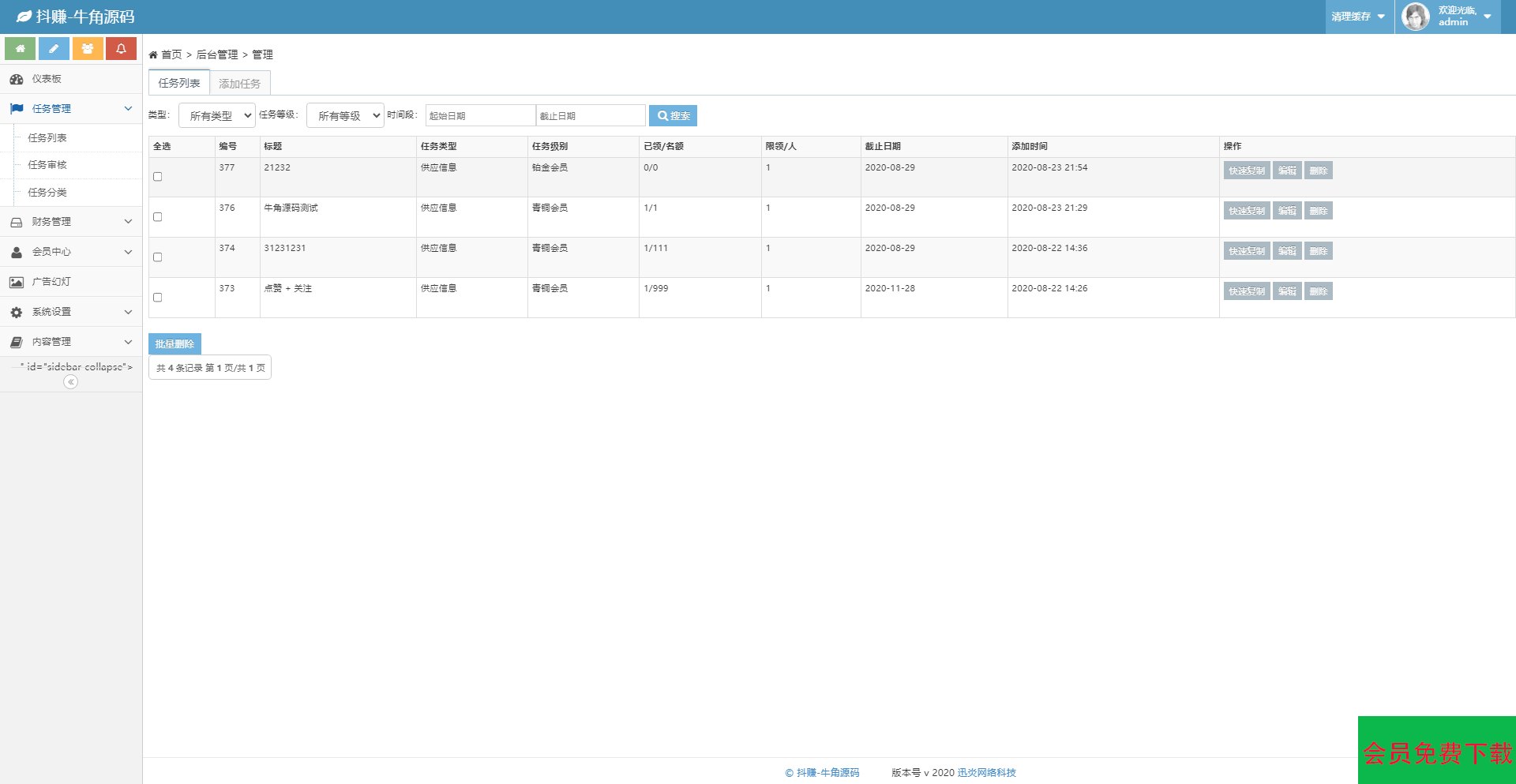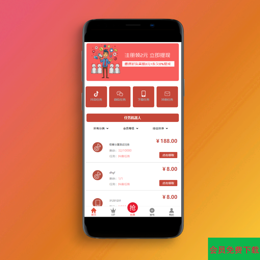 5、不同级别会员使用机器人做的任务对应不同等级会员任务。