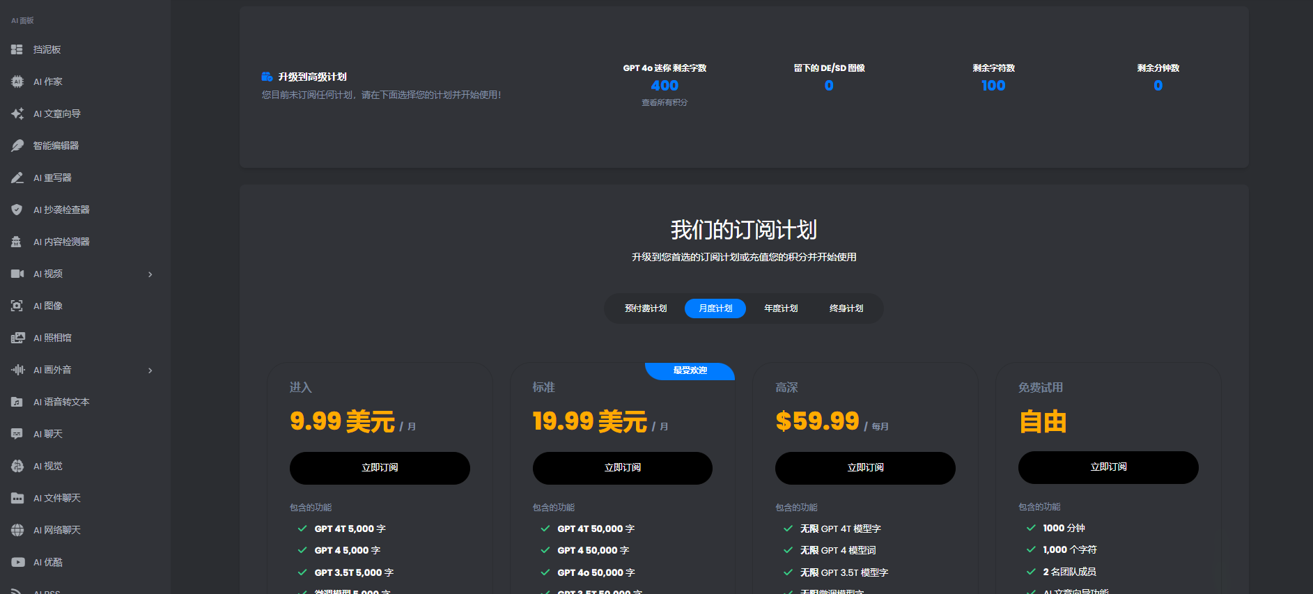 您还可以创建精细的订阅计划,其中包括要使用的精确模型和大量附加功能。它的写作助手功能适用于任何业务