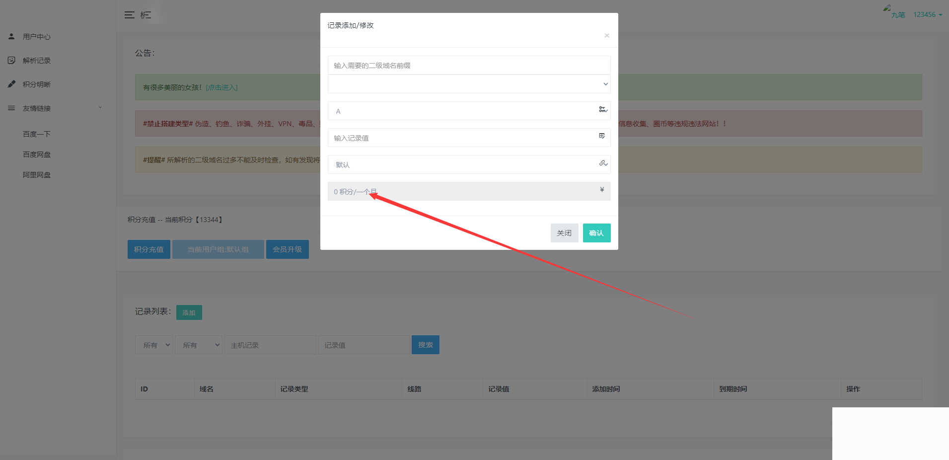 设置金币价格例如 备案域名baidu.com 解析一条10金币一个月,到期自动删除解析