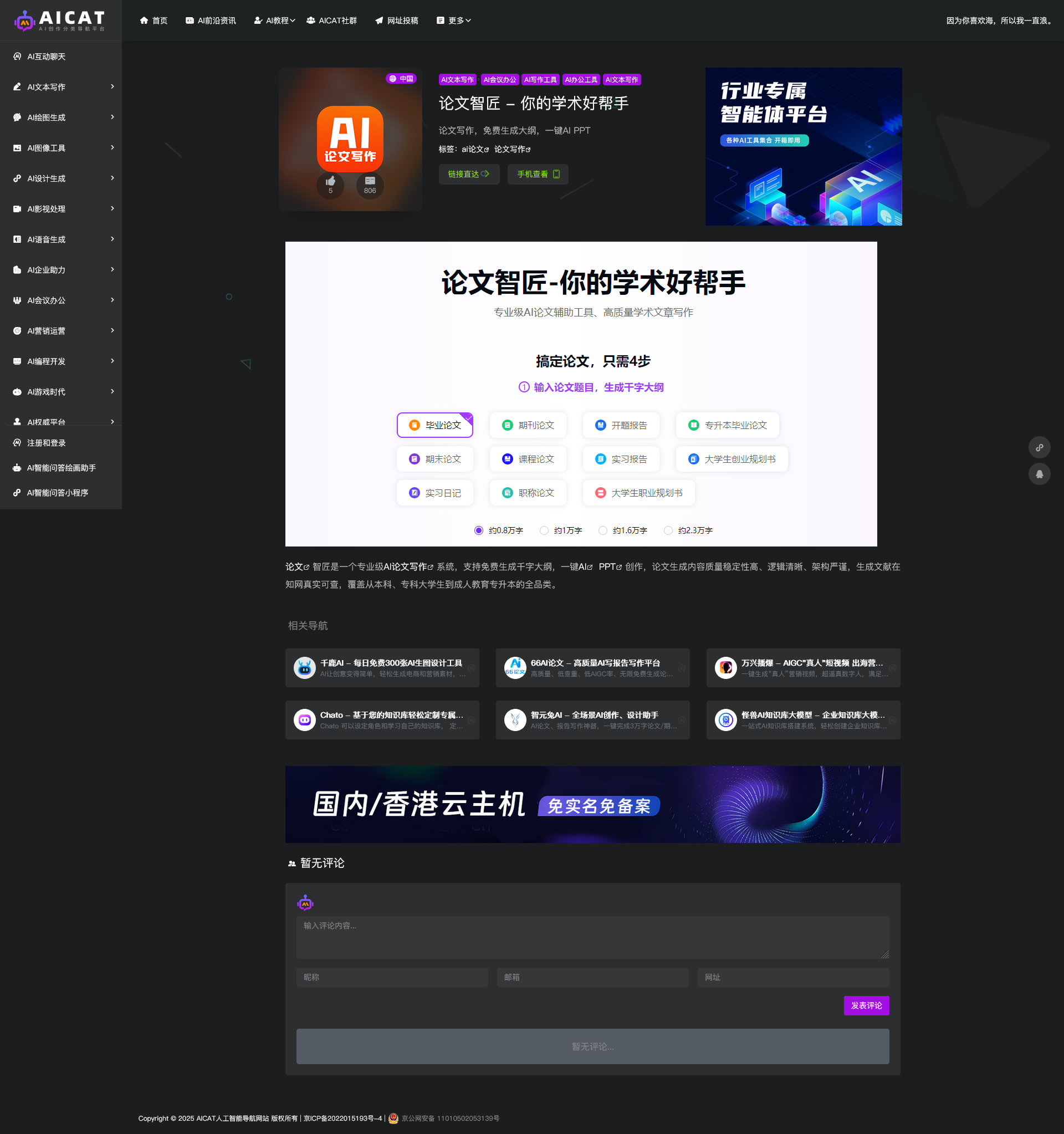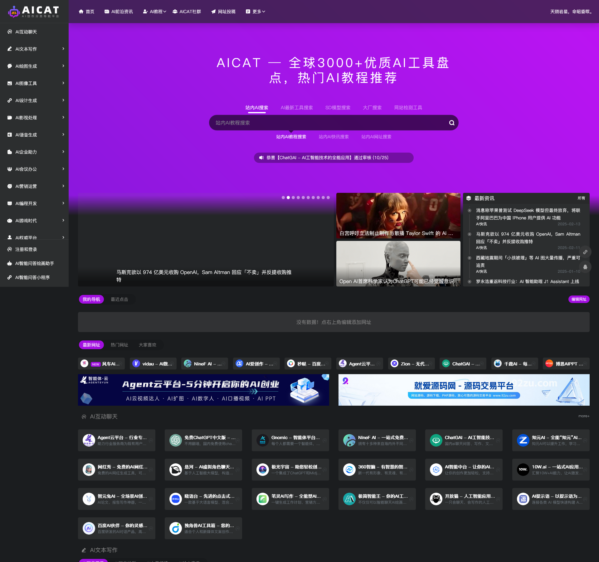 分类众多包括AI相关专业网站,是一个AI网站综合大全!可作为综合性收录站点也可作为专业性AI站点导航网!导航站流量容易上来,广告位容易出售!