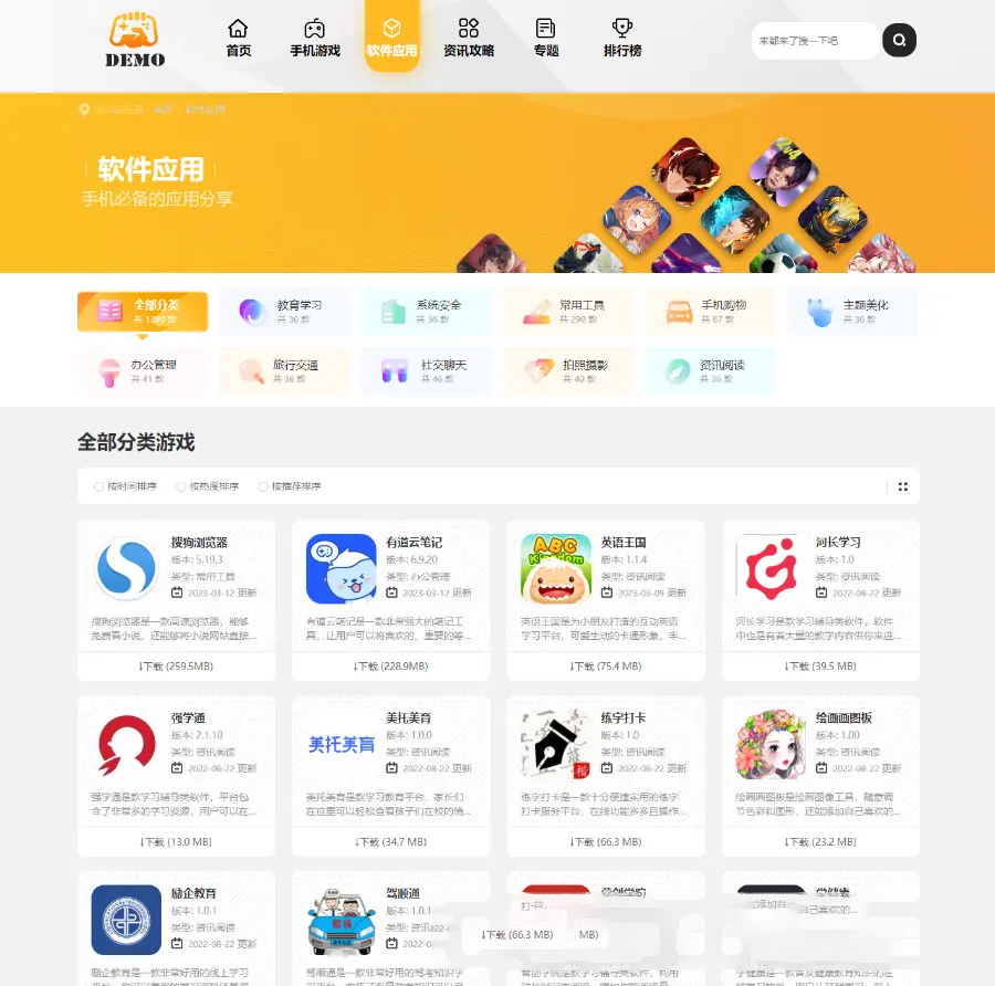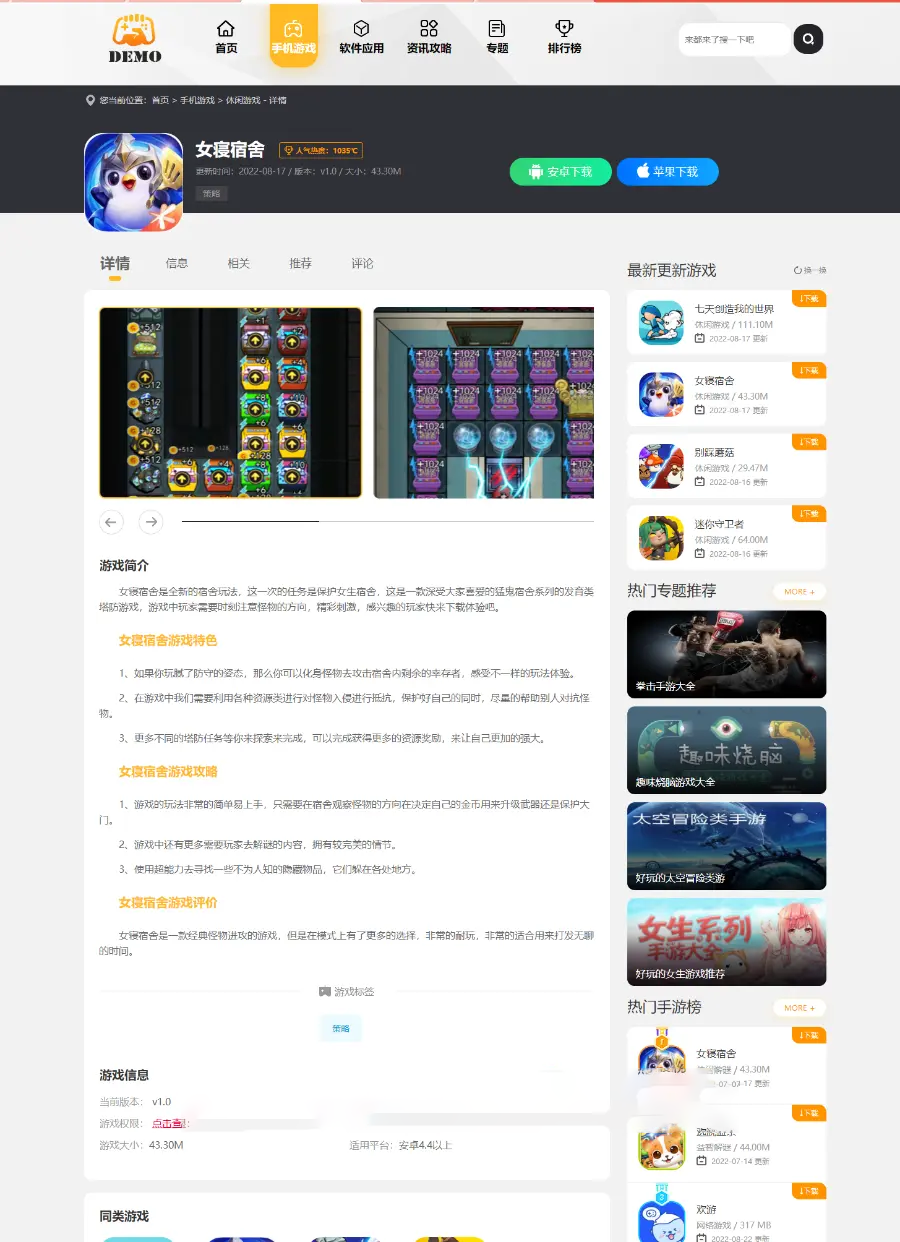 帝国cms7.5手游游戏应用软件APP下载站整站源码模板/百度推送/sitemap/同步生成