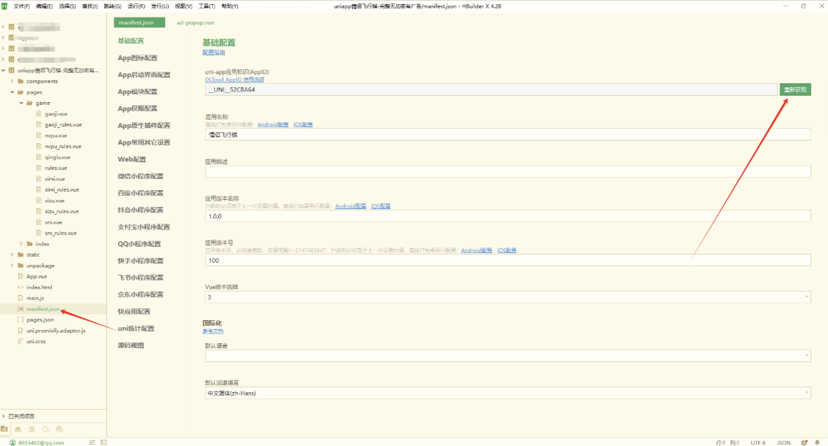 5.点击manifest.json文件,重新获取appid