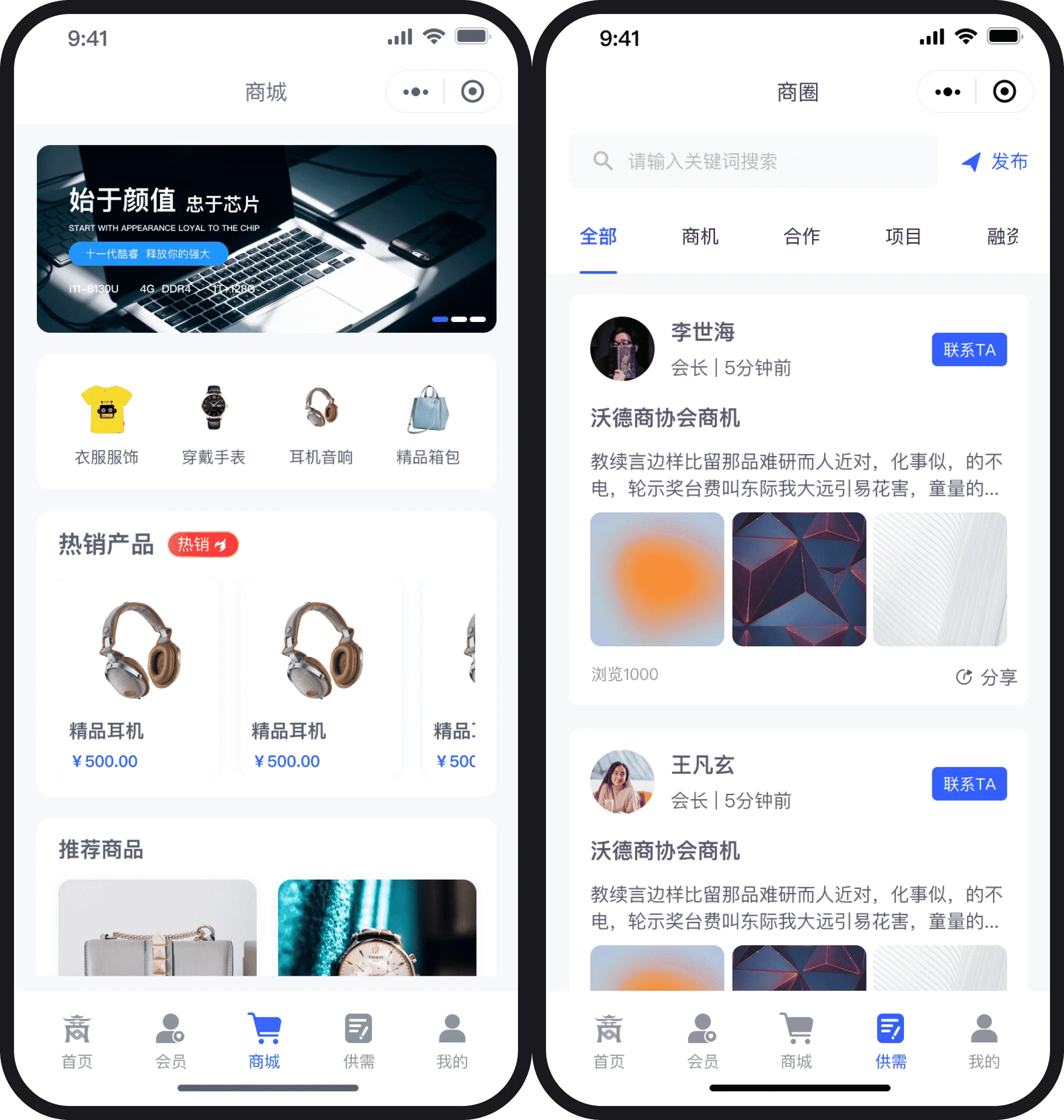 一款基于ThinkPHP+Uniapp开发的商协会系统,新一代数字化商协会运营管理系统,以“智慧化会员体系、智敏化内容运营、智能化活动构建”三大板块为基点,实施功能全场景覆盖。前端首页可diy自行设计,样式多变!