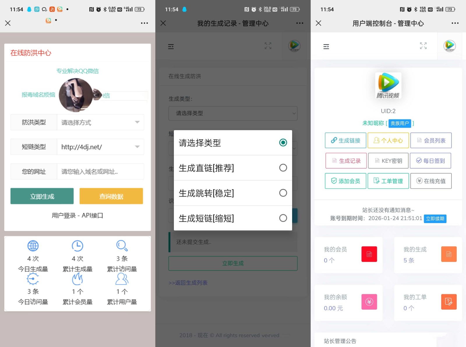 一款不错的防红源码,支持直链/跳转/短链接,使用本系统红了的域名可在微信和QQ直接打开,系统带访问记录列表,可查看访问者ip和访问方式,带会员和支付功能