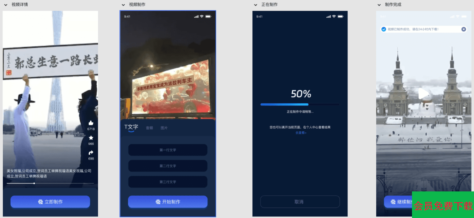 uniapp视频改字祝福 豪车装X系统源码 全开源,只有uniapp前端,API接口需要寻找对应的。