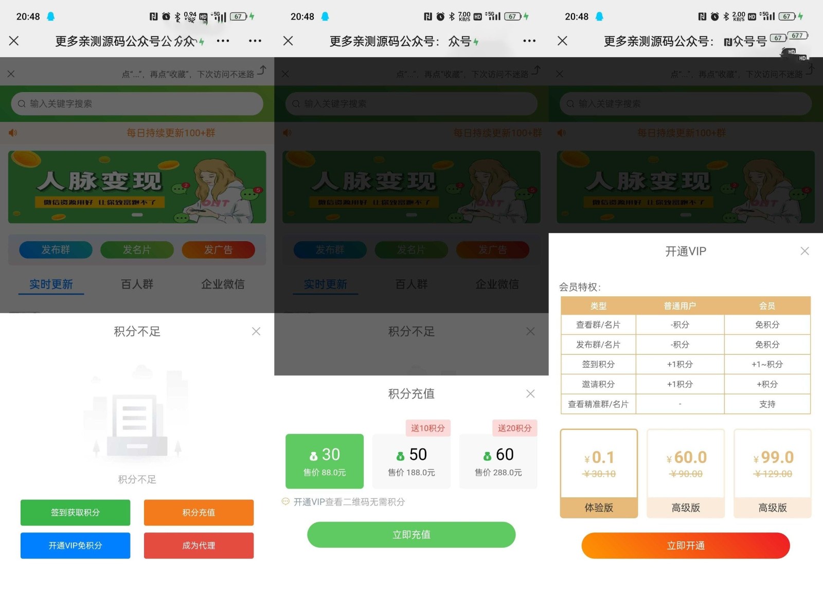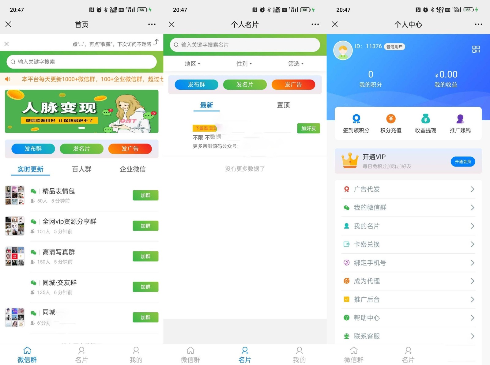 浏览器访问前台可以注册账户卡密充值会员等等,微信访问自行配置支付信息
