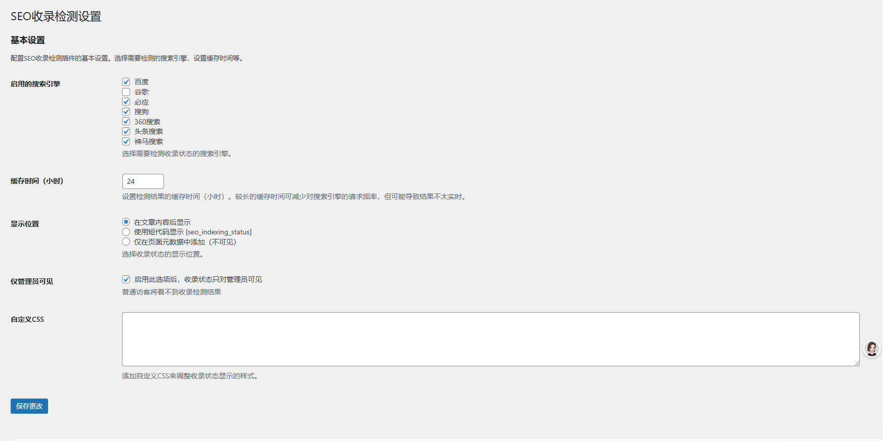 1. 在WordPress后台导航至”设置” > “SEO收录检测”